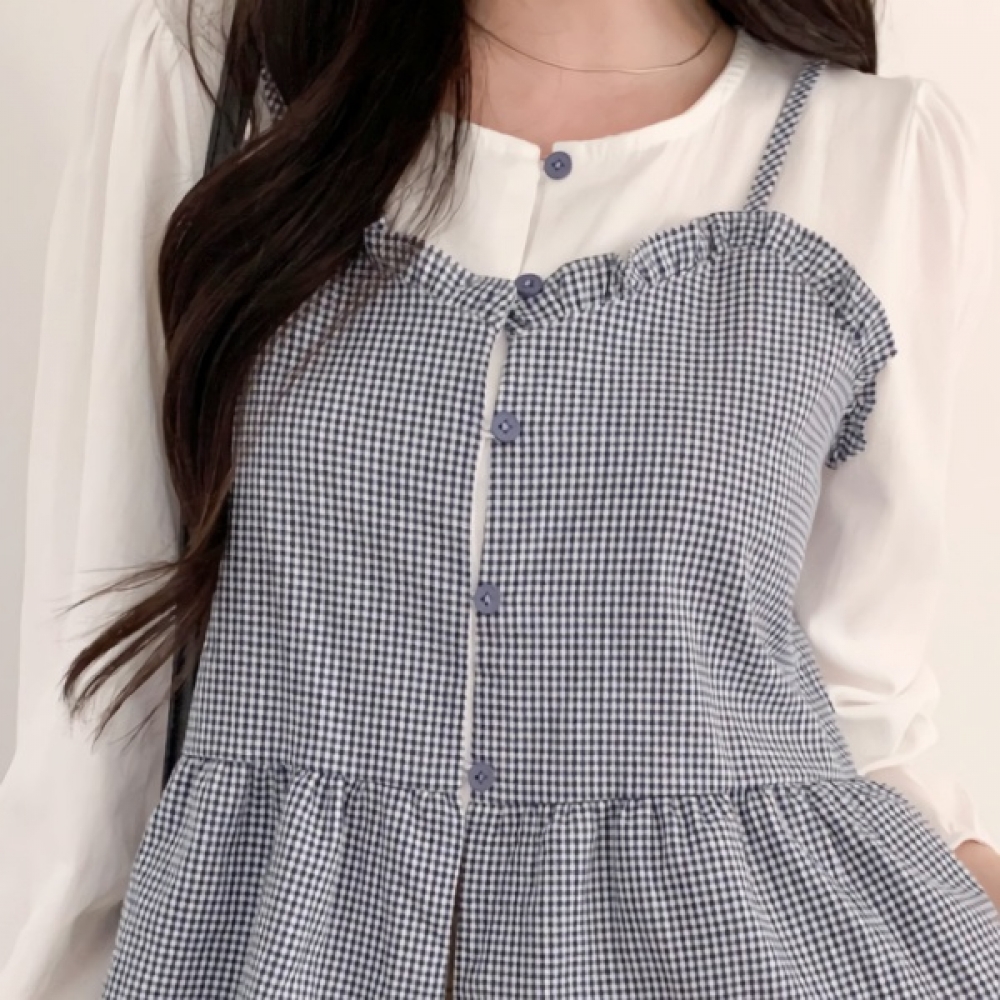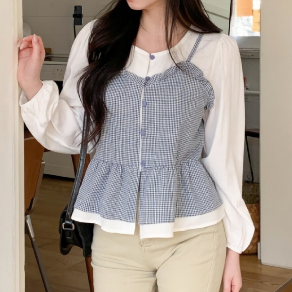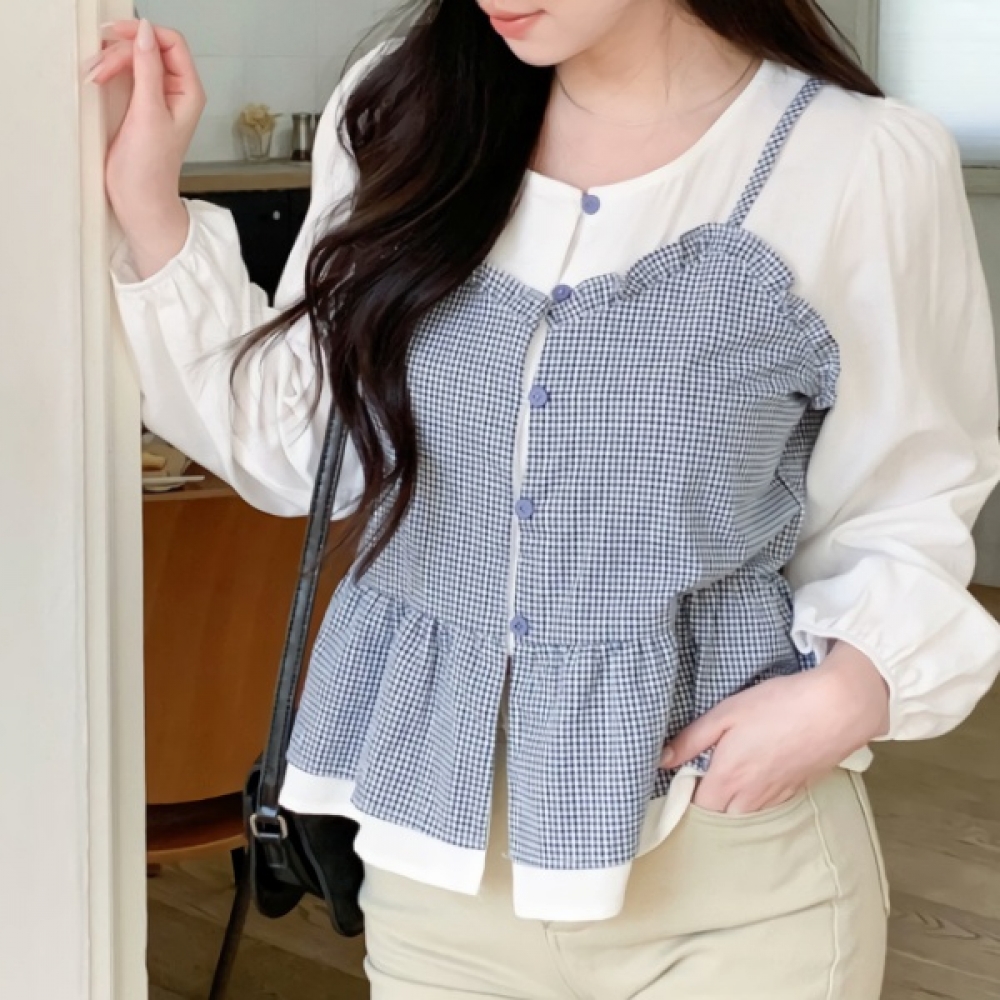 여성 봄 체크 뷔스티에 레이어드 셔츠