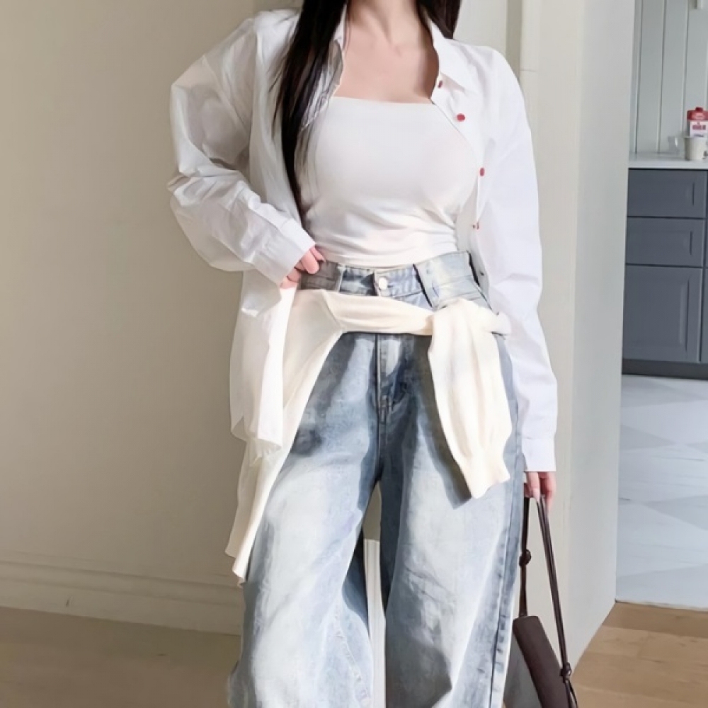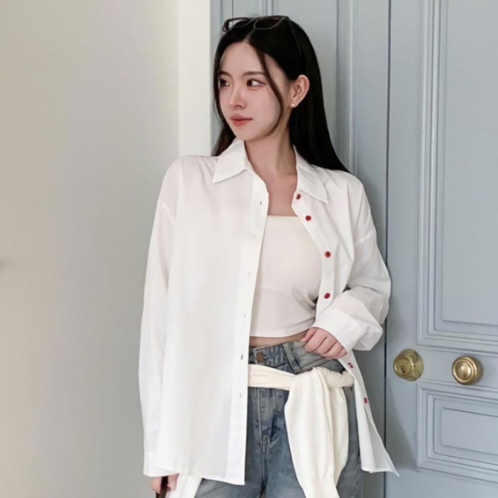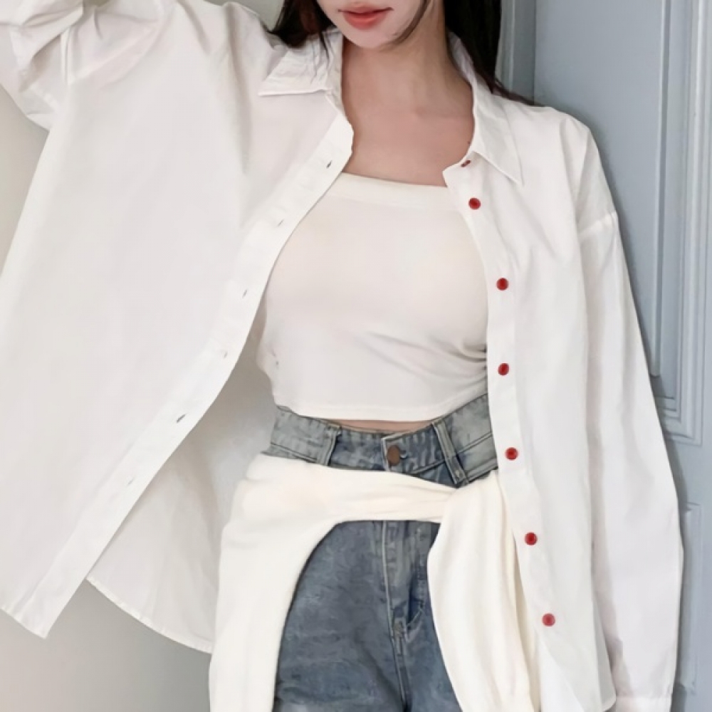 여성 봄 여름 오버핏 무지 포켓 코튼 셔츠