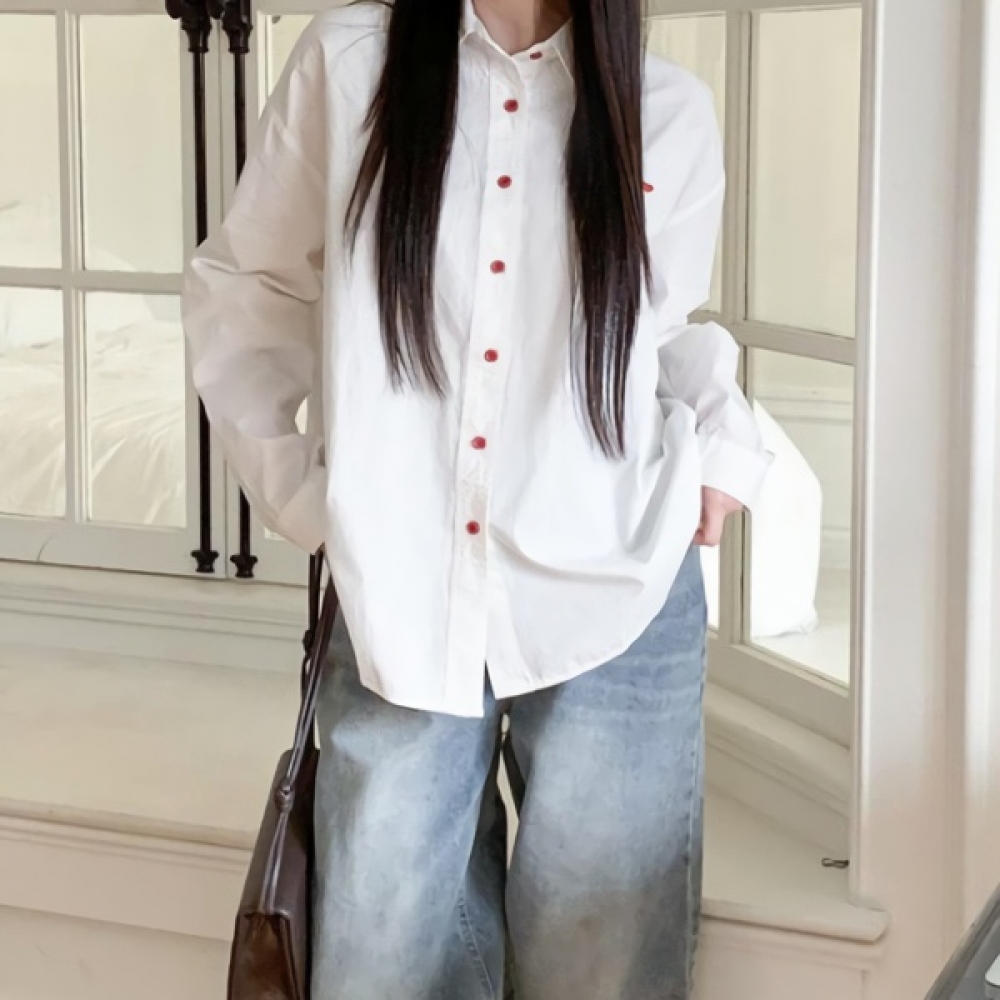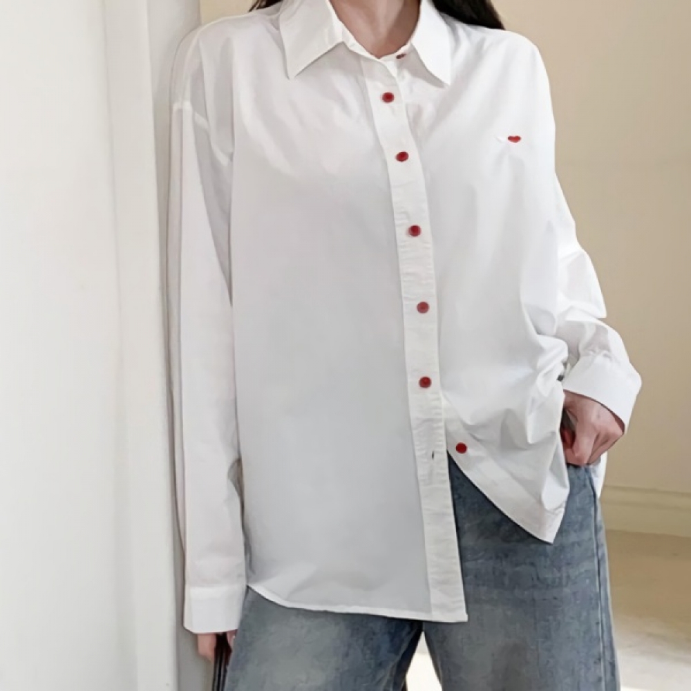 여성 봄 여름 하트 자수 오버핏 무지 셔츠