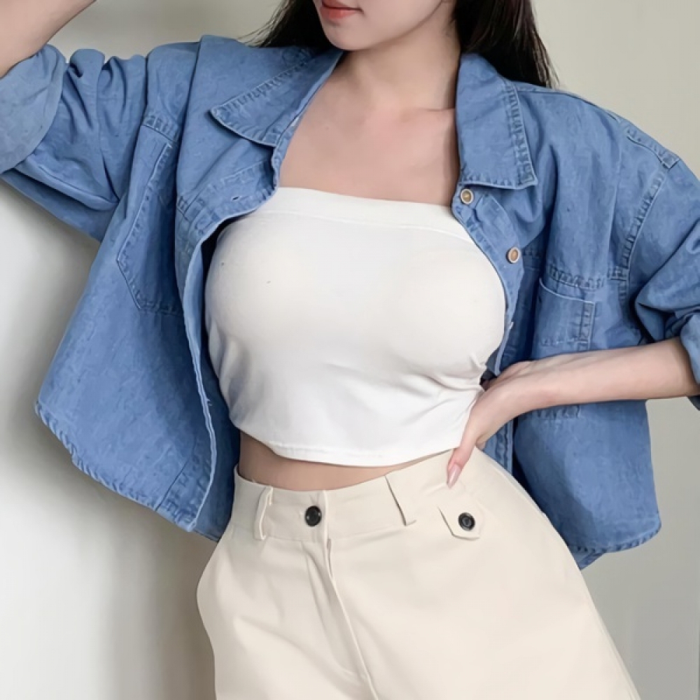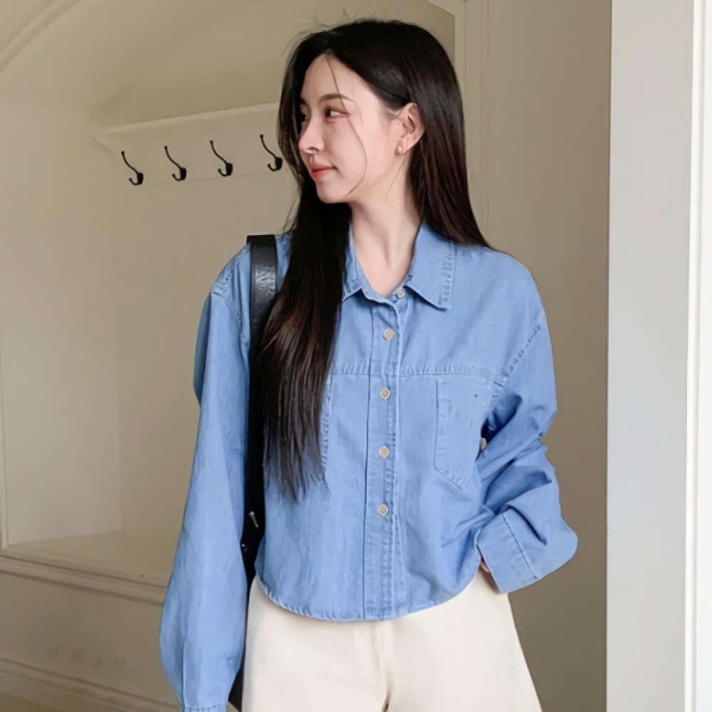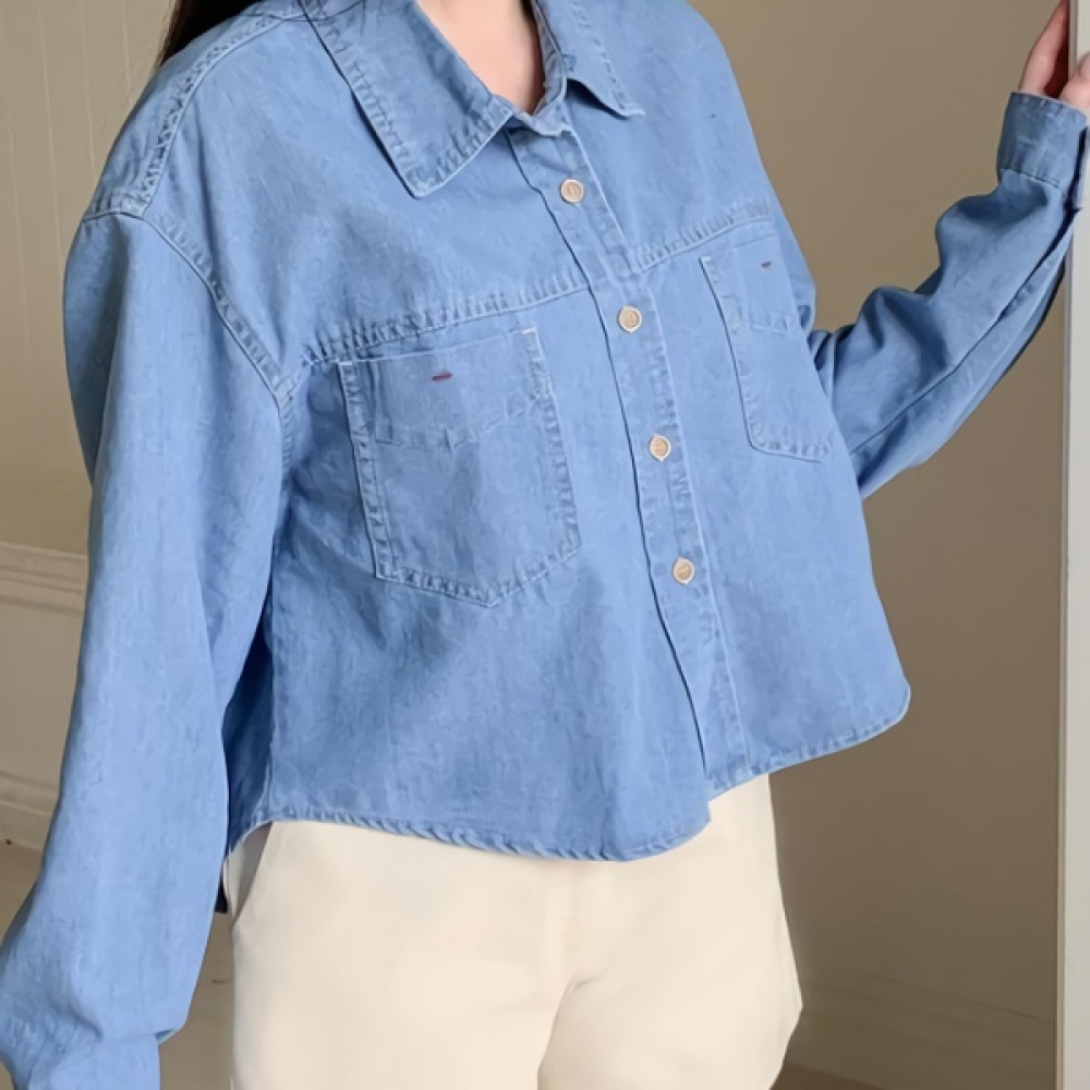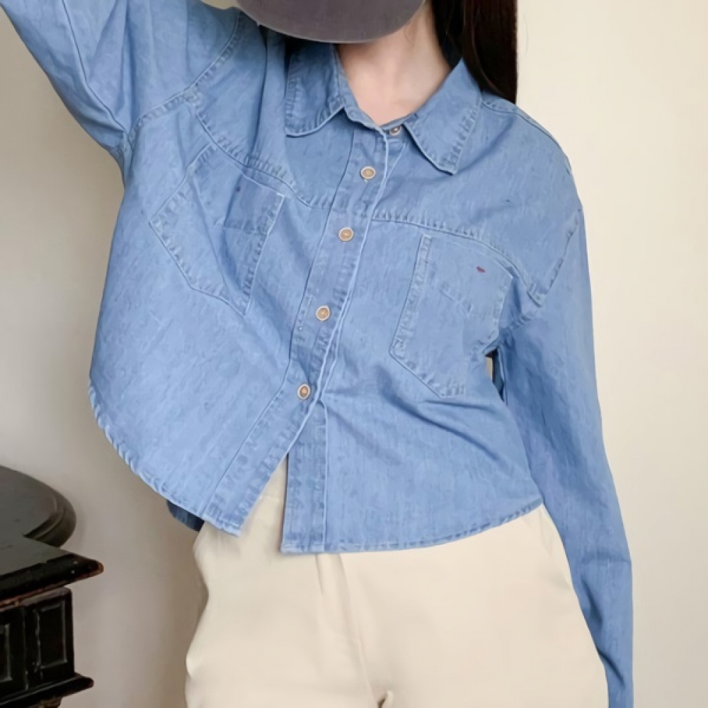 여성 봄 포켓 포인트 데님 셔츠 자켓