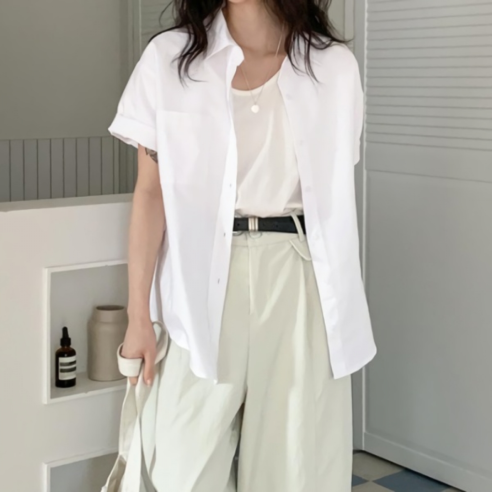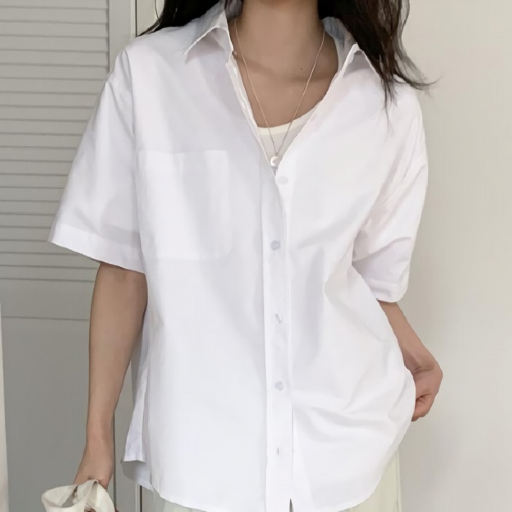 여성 봄 여름 오버핏 무지 포켓 코튼 셔츠