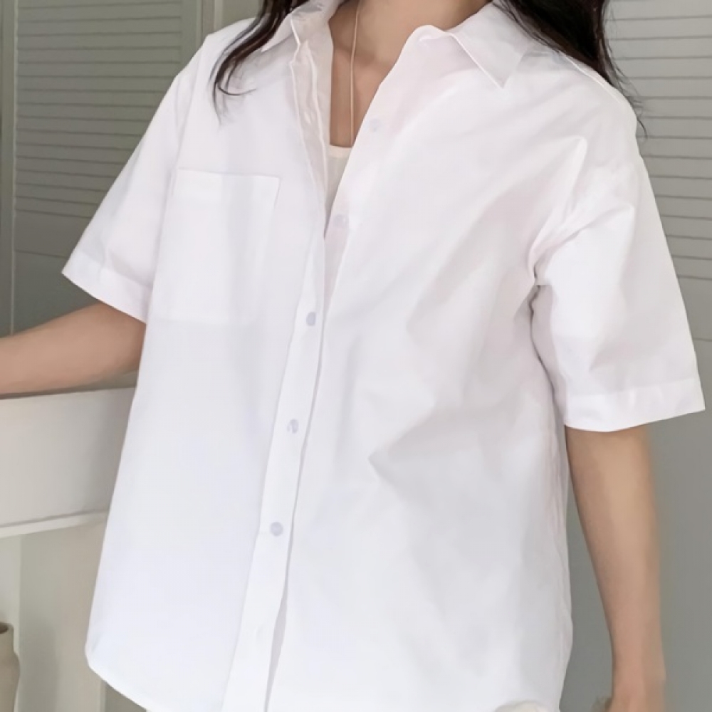 여성 봄 여름 옥스포드 포켓 반팔 셔츠