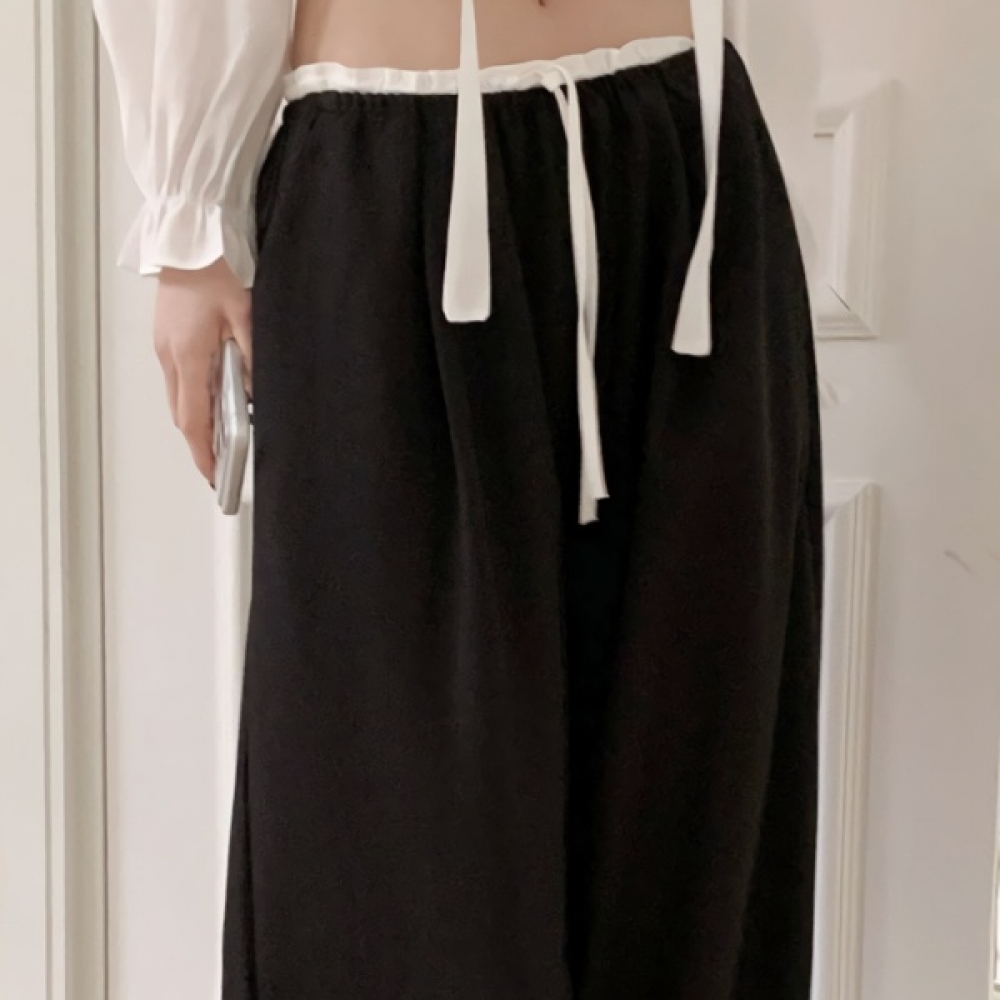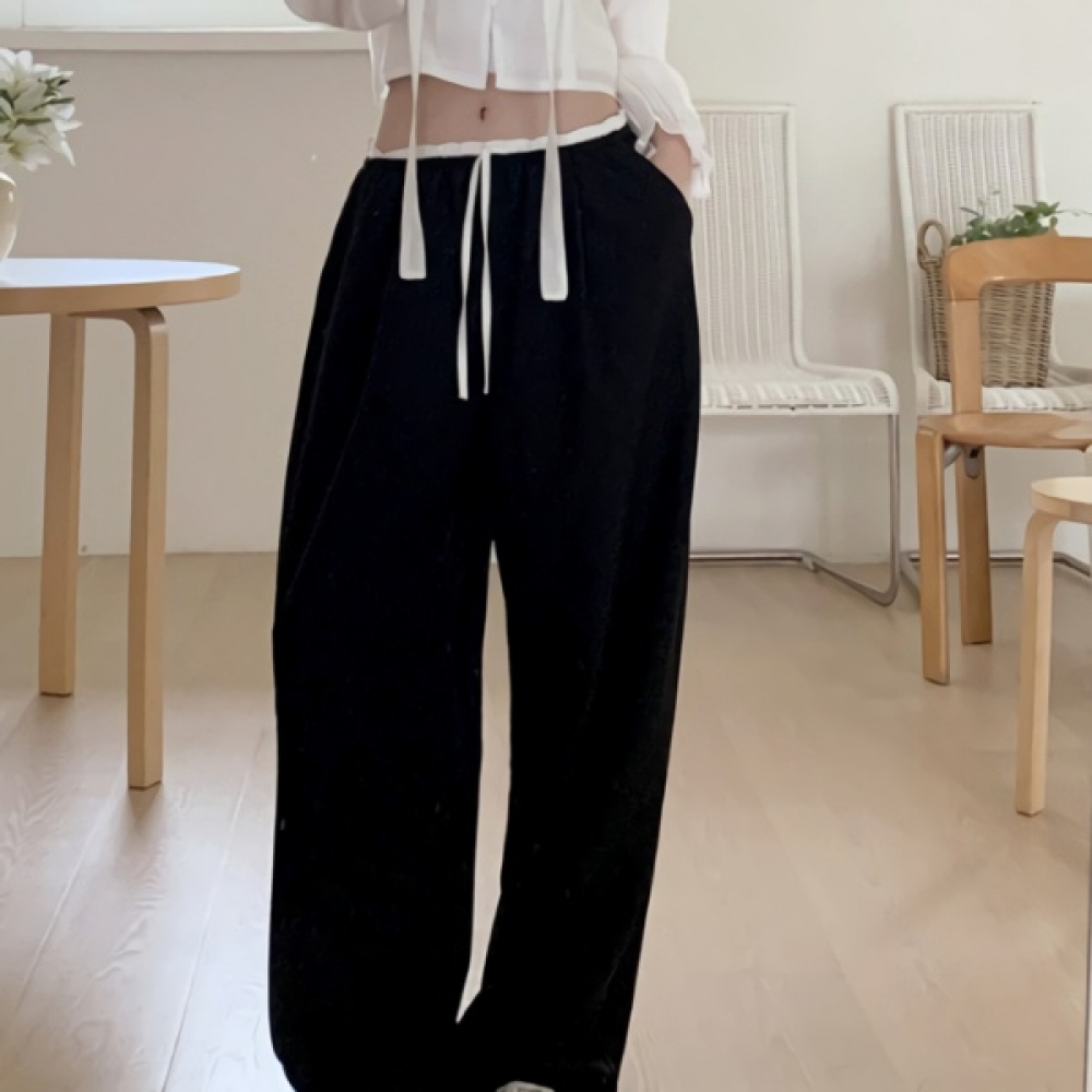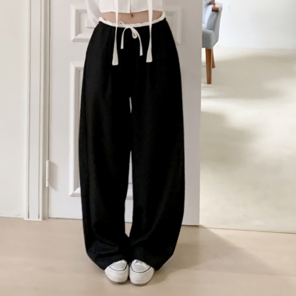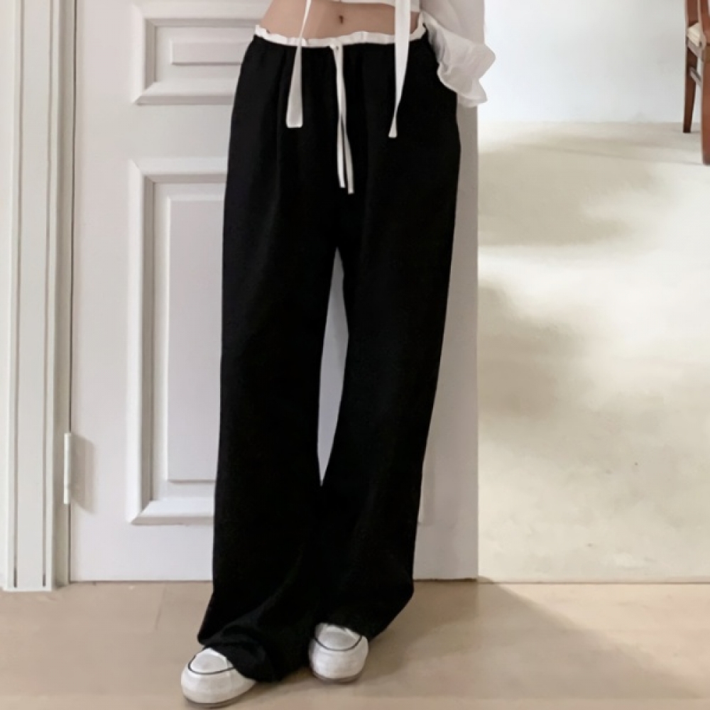 여성 봄 허리 배색 일자핏 밴딩 슬랙스