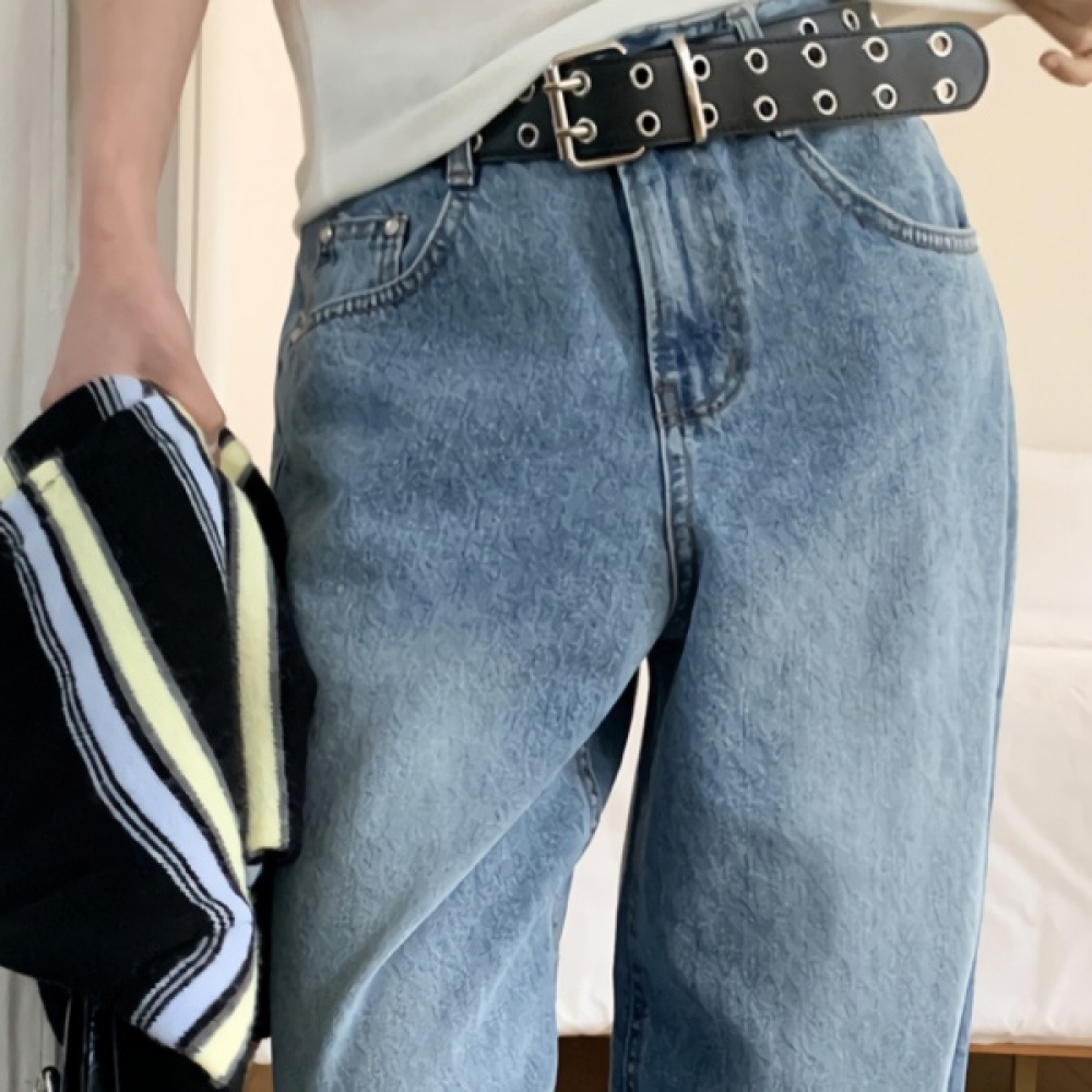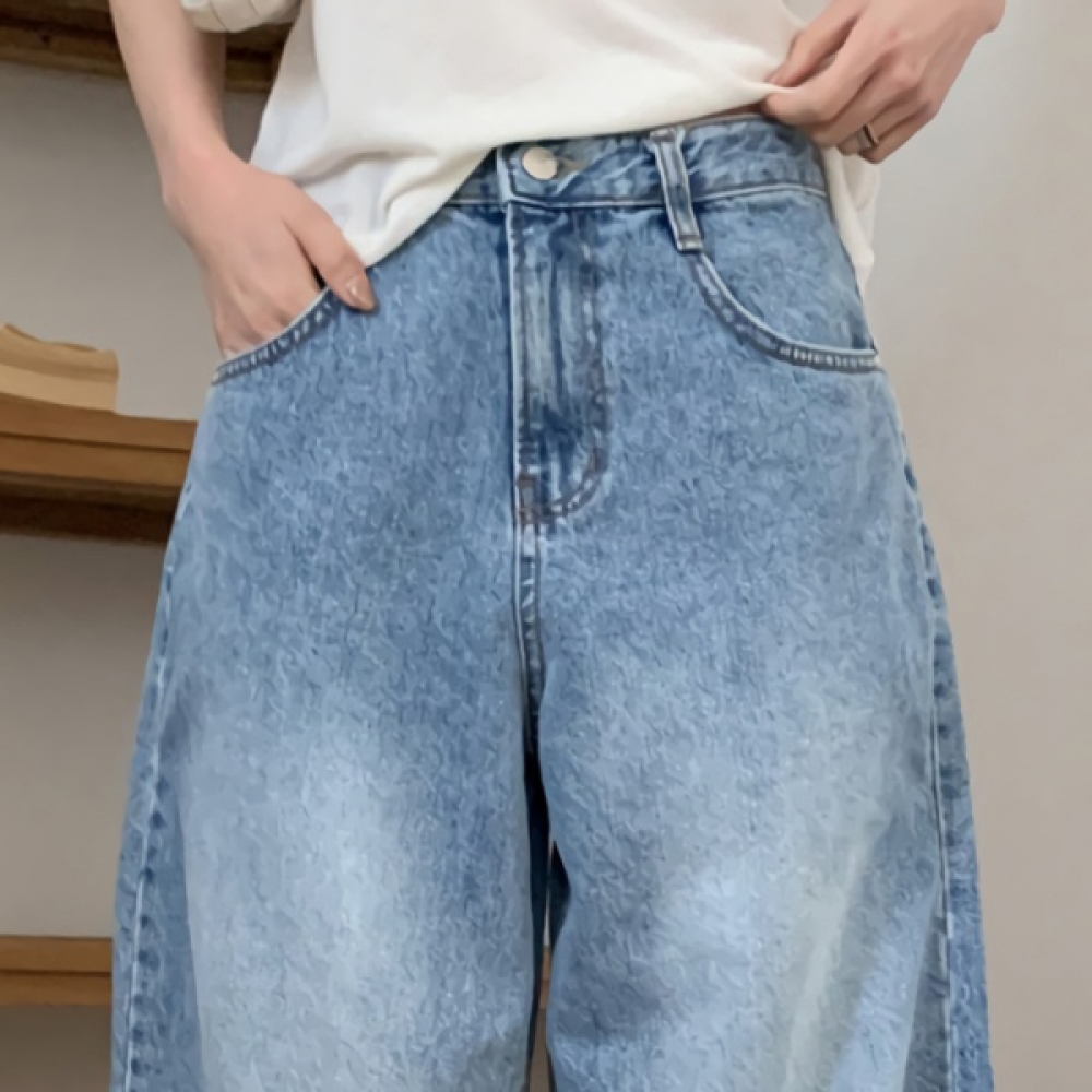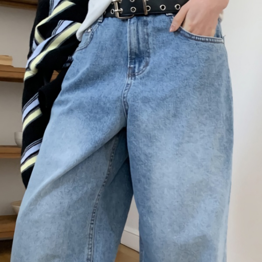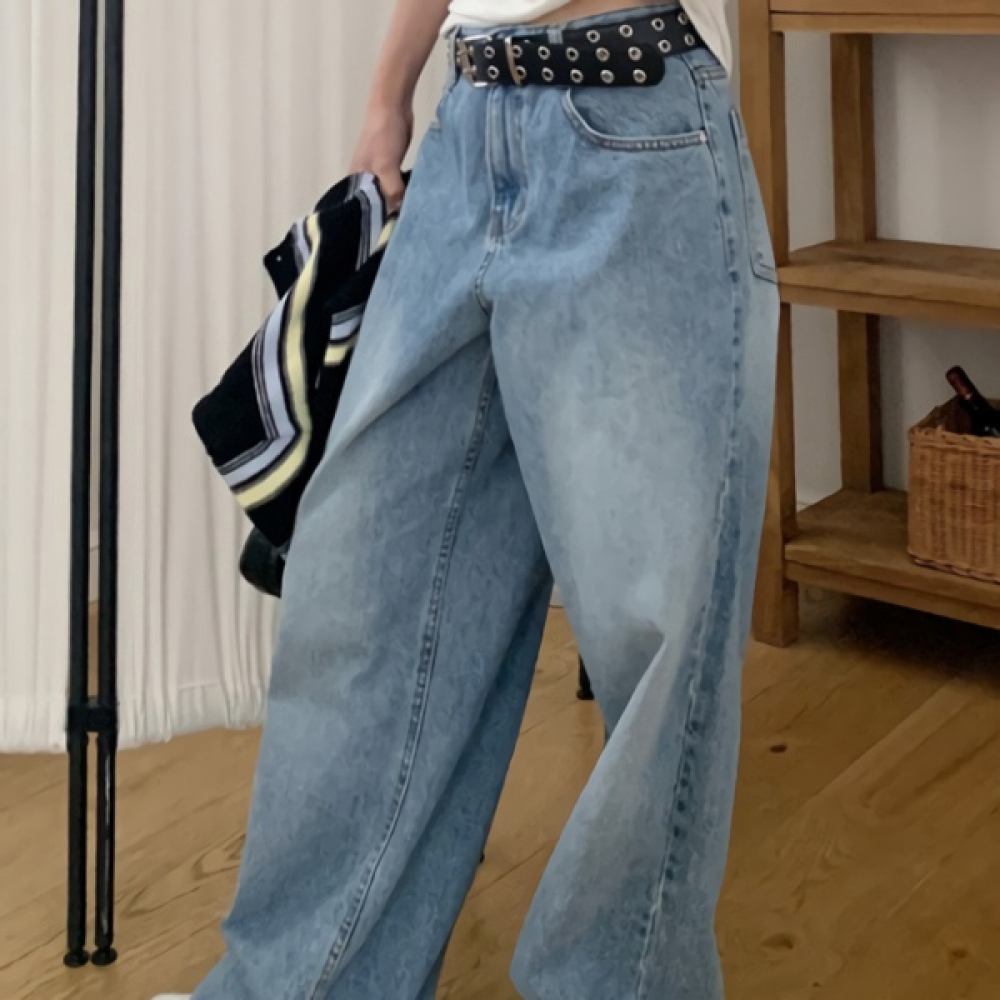 여성 워싱 스트레이트 와이드 데님 팬츠