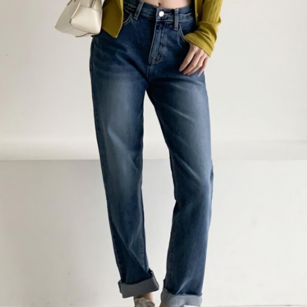 여성 워싱 스트레이트 와이드 데님 팬츠