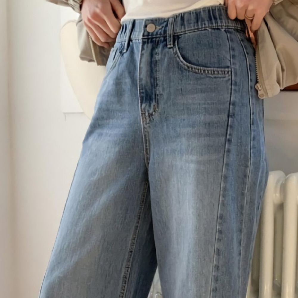여성 워싱 스트레이트 와이드 데님 팬츠