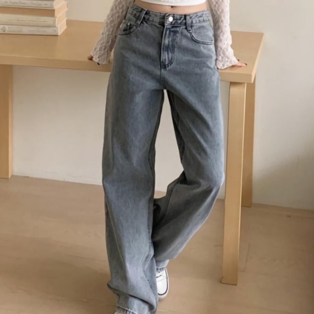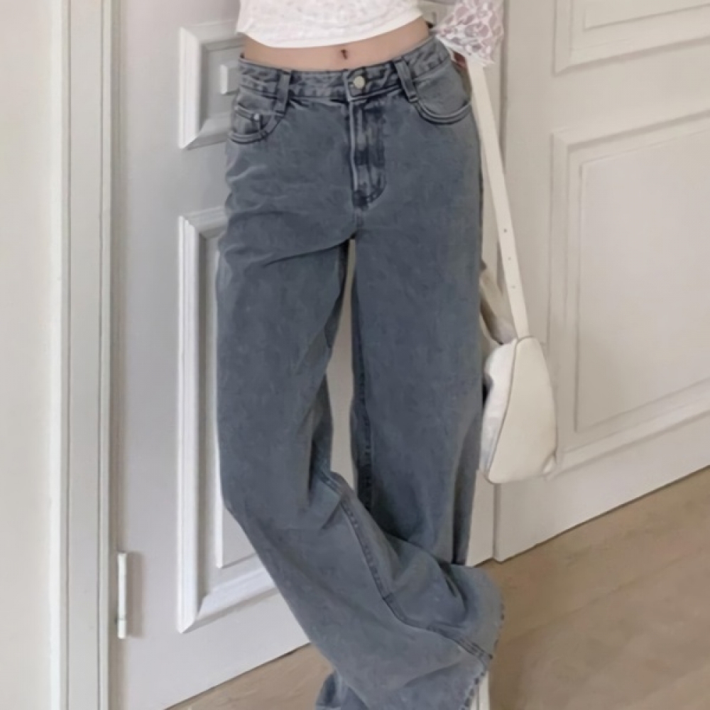 여성 워싱 스트레이트 와이드 데님 팬츠