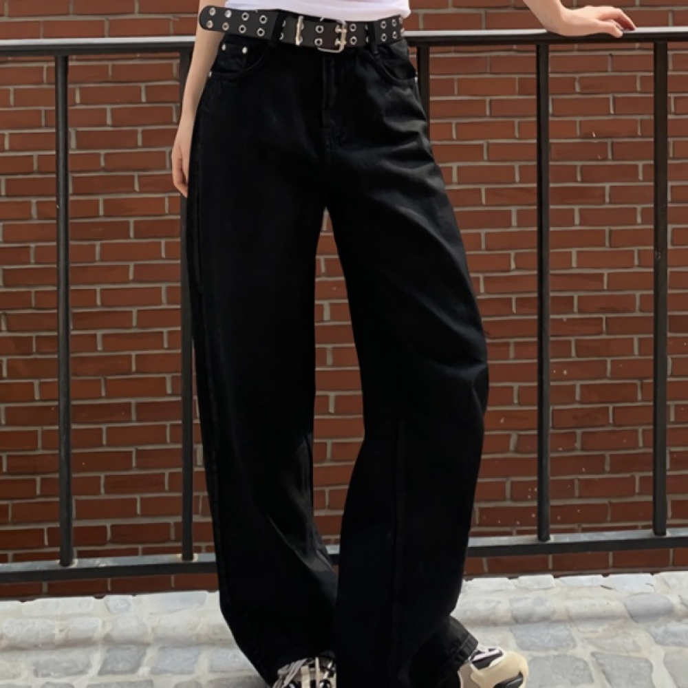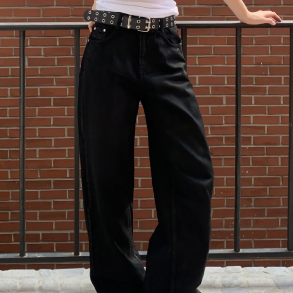 여성 워싱 스트레이트 와이드 데님 팬츠