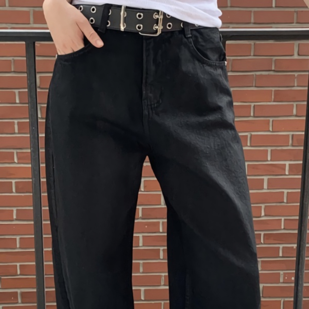 여성 봄 블랙 코팅 와이드 데님 팬츠