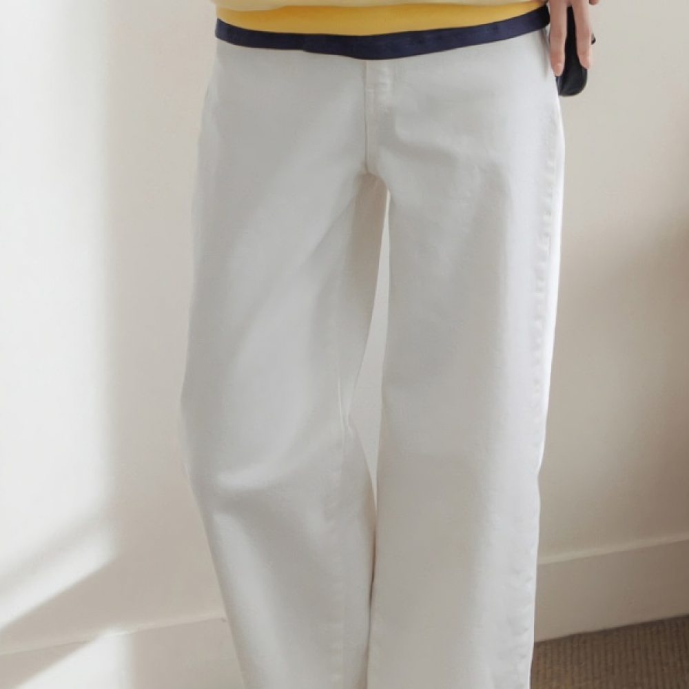 여성 커브드 배럴 배기 코튼 밴딩 팬츠