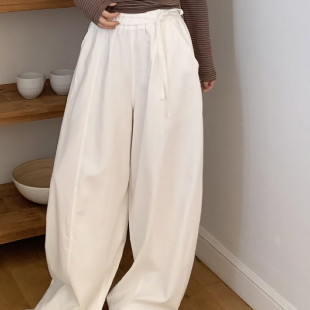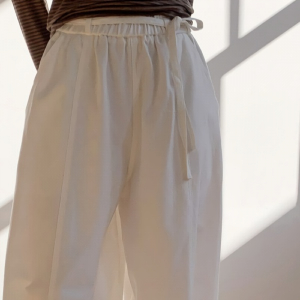 여성 봄 핀턱 세미 와이드 밴딩 슬랙스