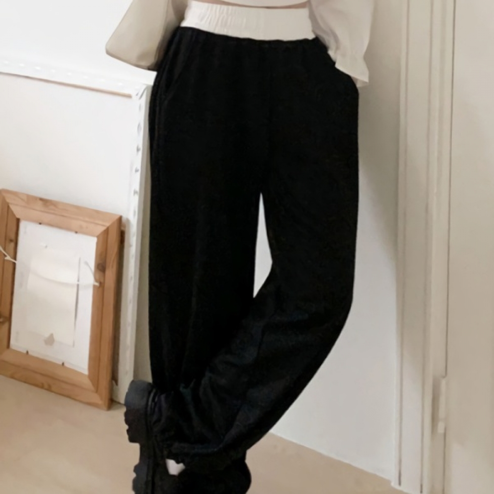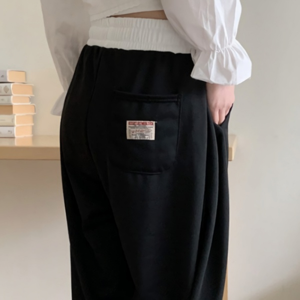 여성 뒷패치 와이드 벌룬핏 배색 밴딩 팬츠