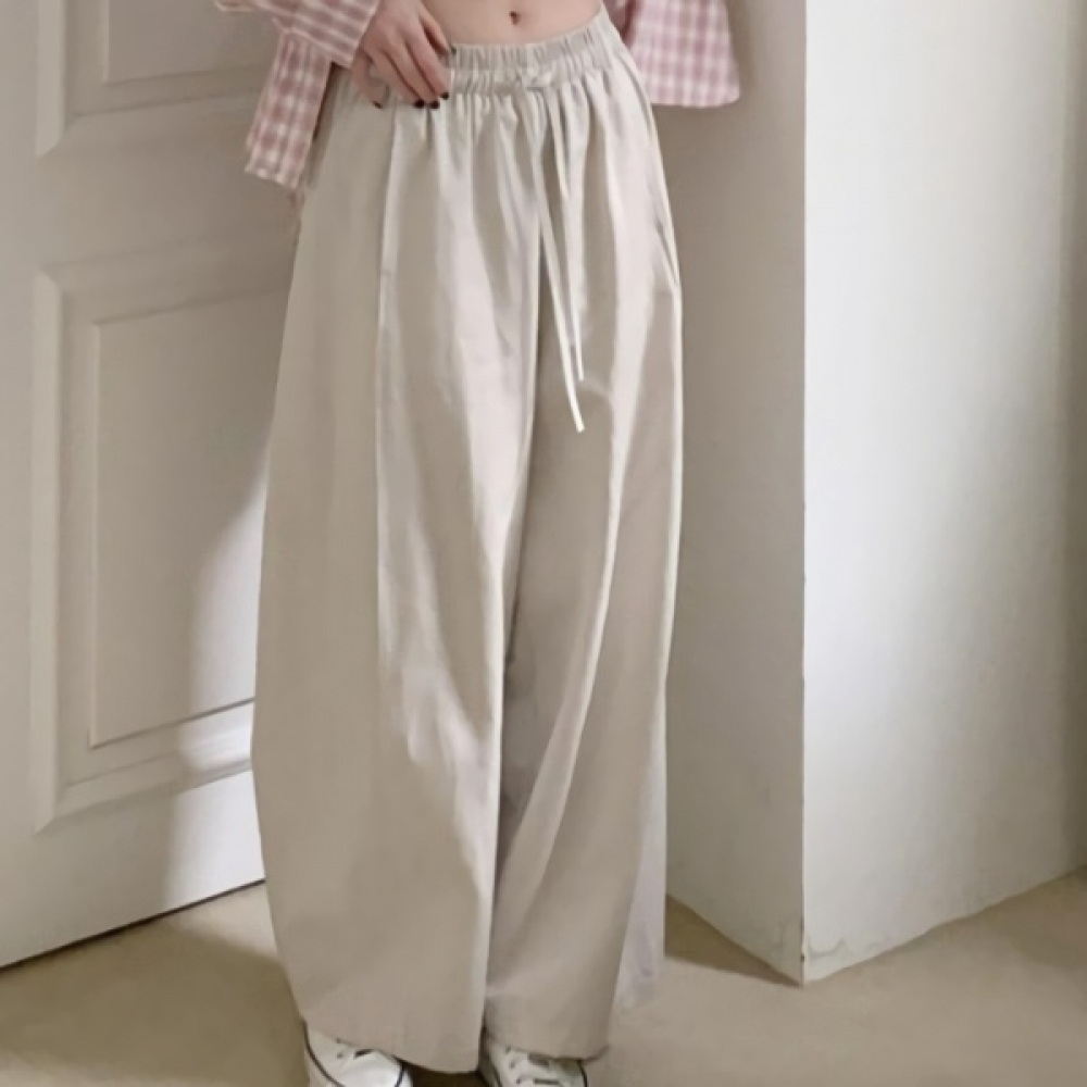 여성 봄 핀턱 세미 와이드 밴딩 슬랙스