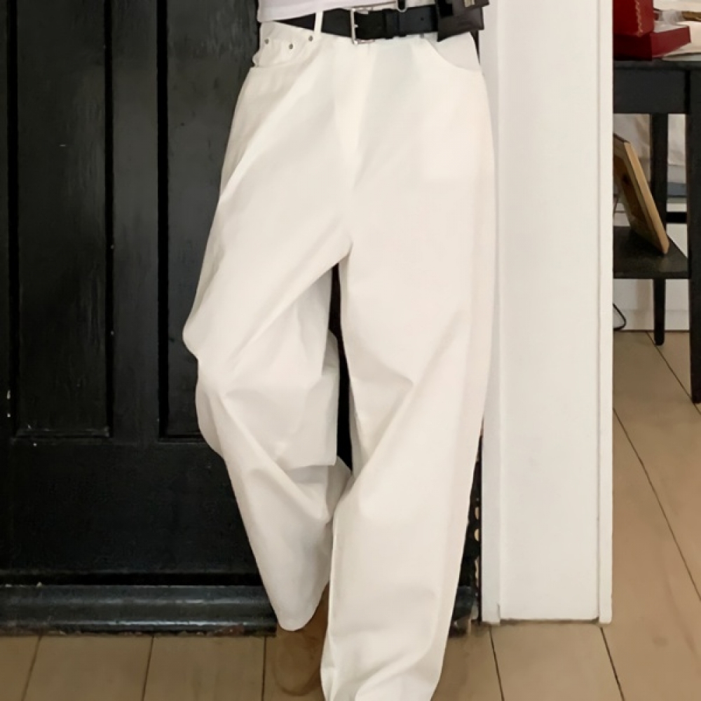 여성 봄 벌룬핏 와이드 코튼 팬츠