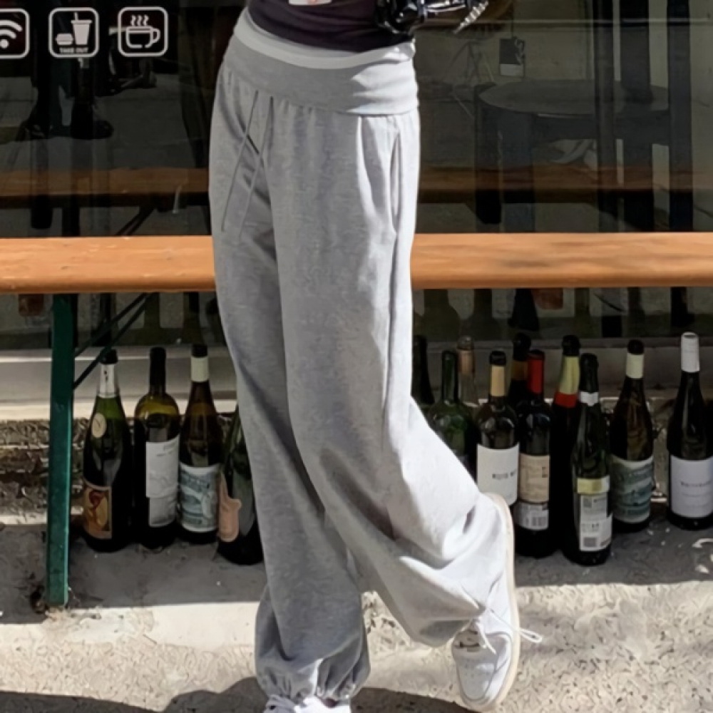 여성 와이드 폴딩 밴드 투웨이 트레이닝 팬츠