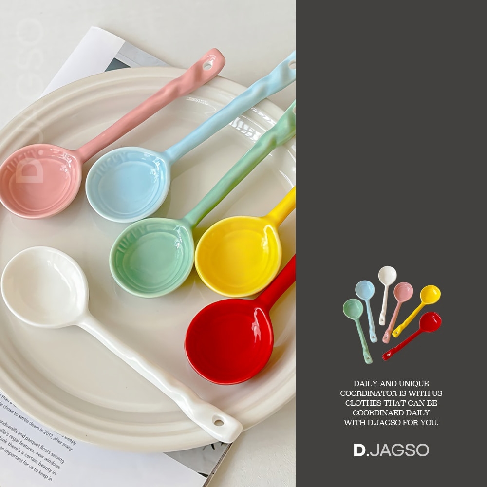 홈꾸 도자기 타입의 6가지 컬러 수저 커트러리