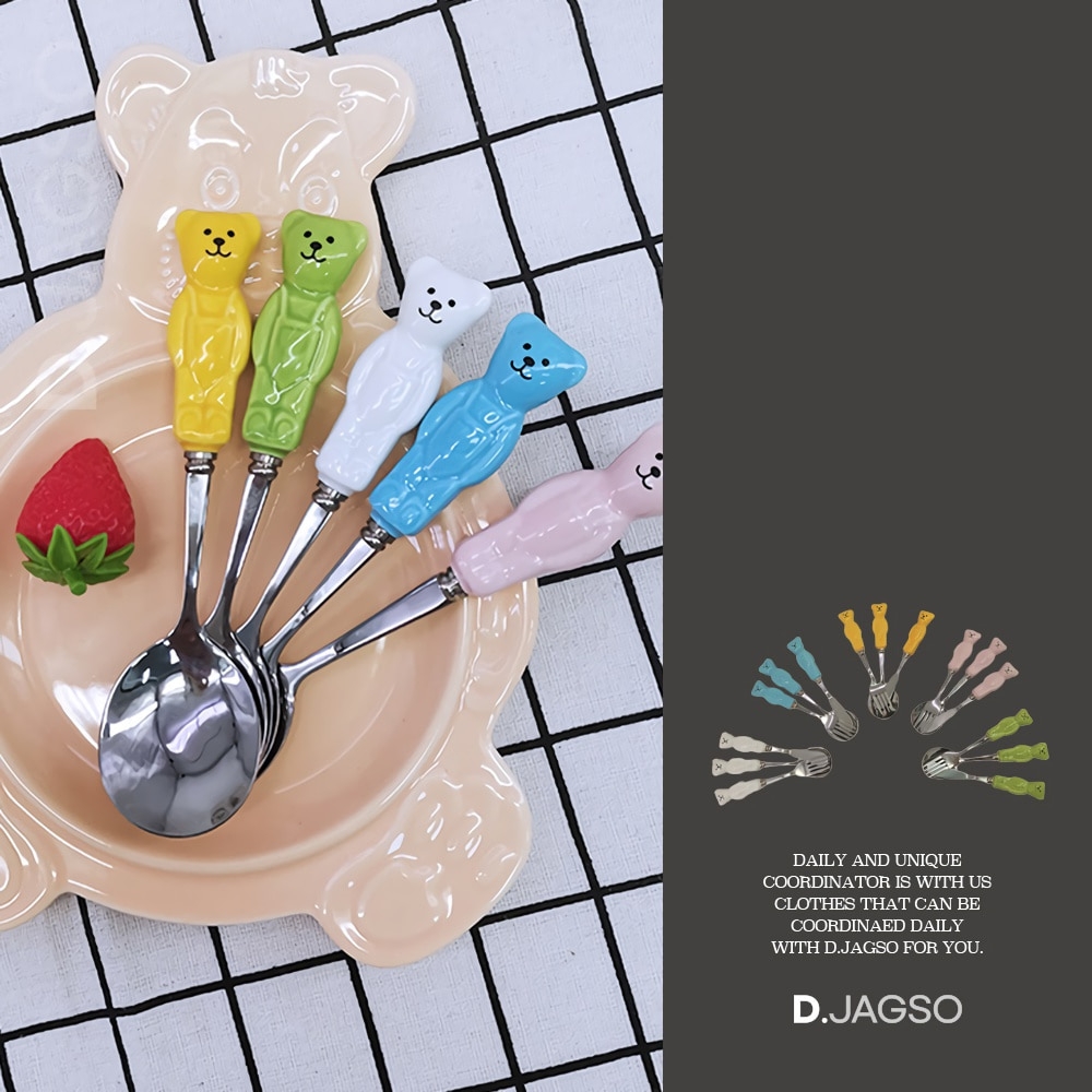 귀여운 캐릭터 곰돌이 컬러풀 포크 수저 2종
