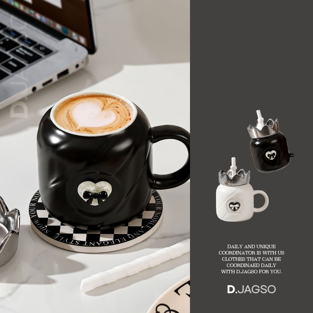 리본 포인트 크라운 왕관 손잡이 머그 컵