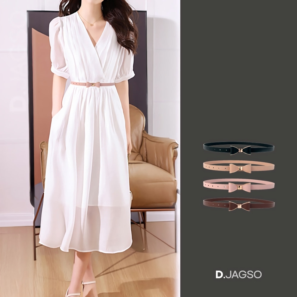 여성 각진 엣지 리본 포인트 레더 패션 벨트