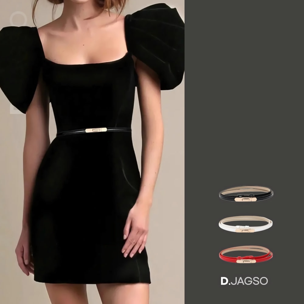 여성 각진 엣지 리본 포인트 레더 패션 벨트