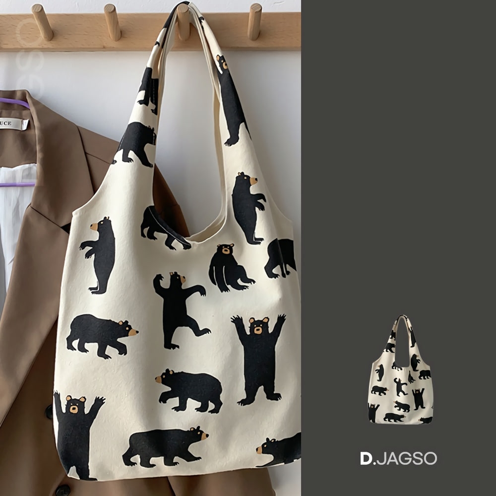 테디베어 곰 일러스트 패턴 키치스 숄더 에코백