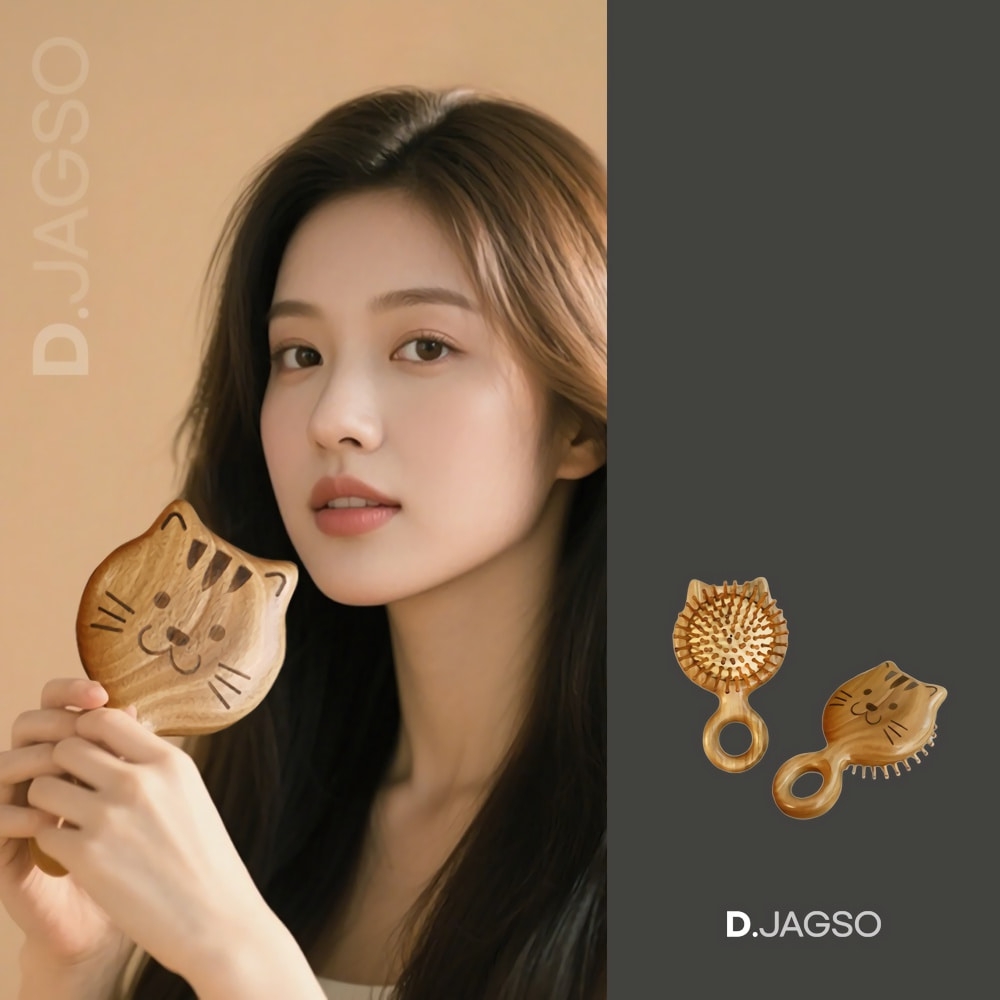 고양이 우드 원목 헤어 두피 마사지 머리 빗