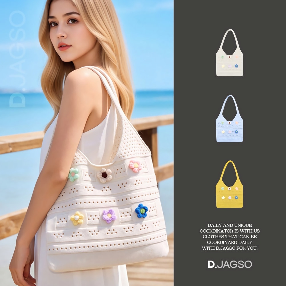 여성 봄 여름 플라워 포인트 니트 뜨게 가방