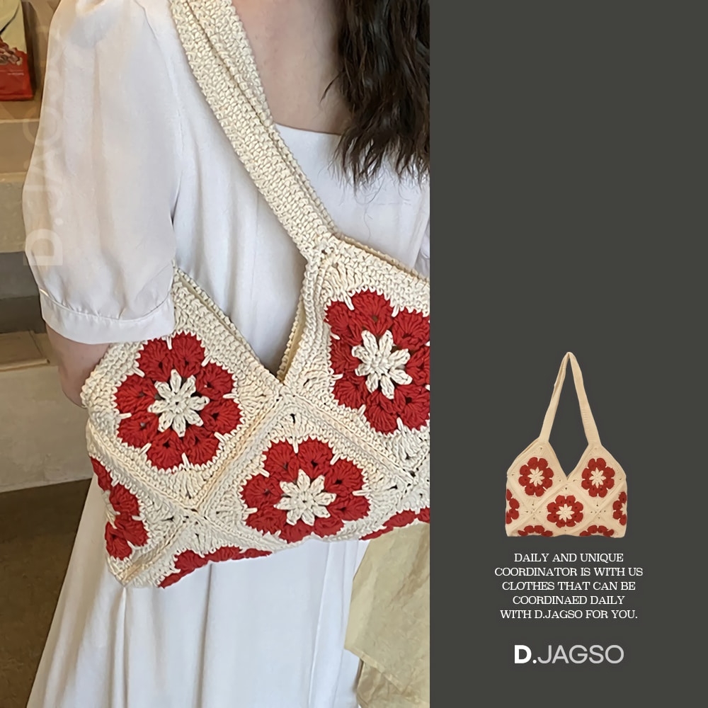 여성 봄 여름 플라워 포인트 니트 뜨게 가방