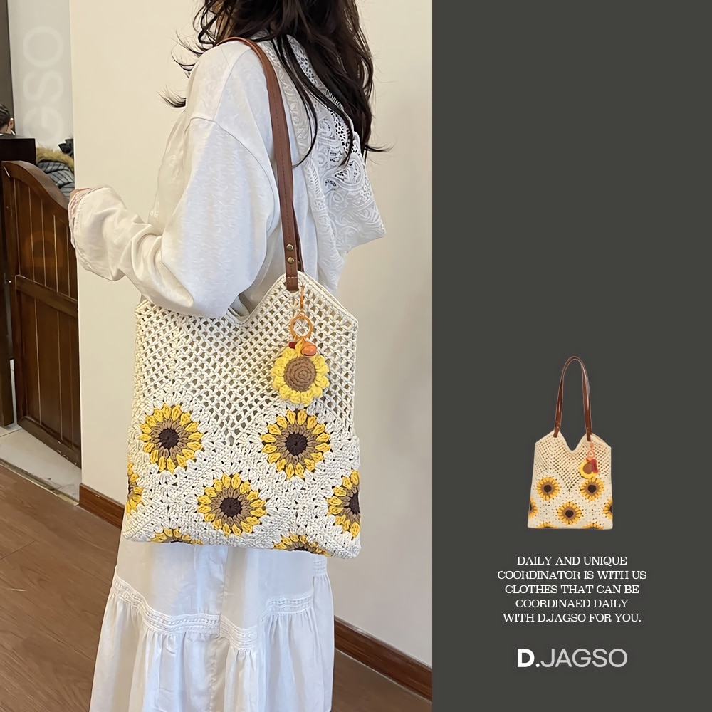여성 해바라기 포인트 자수 뜨게 여름 니트백