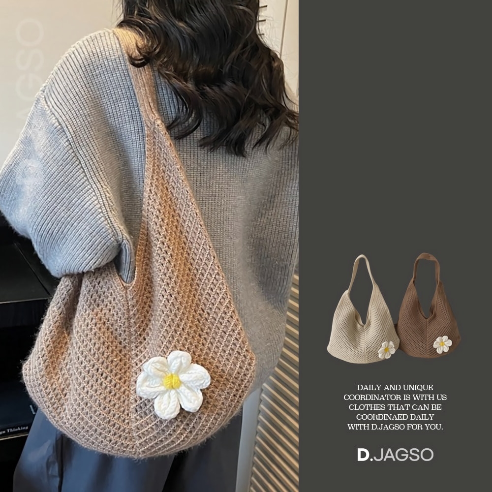 여성 봄 여름 플라워 포인트 니트 뜨게 가방
