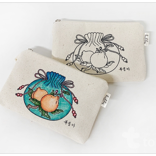 민화파우치-복숭아