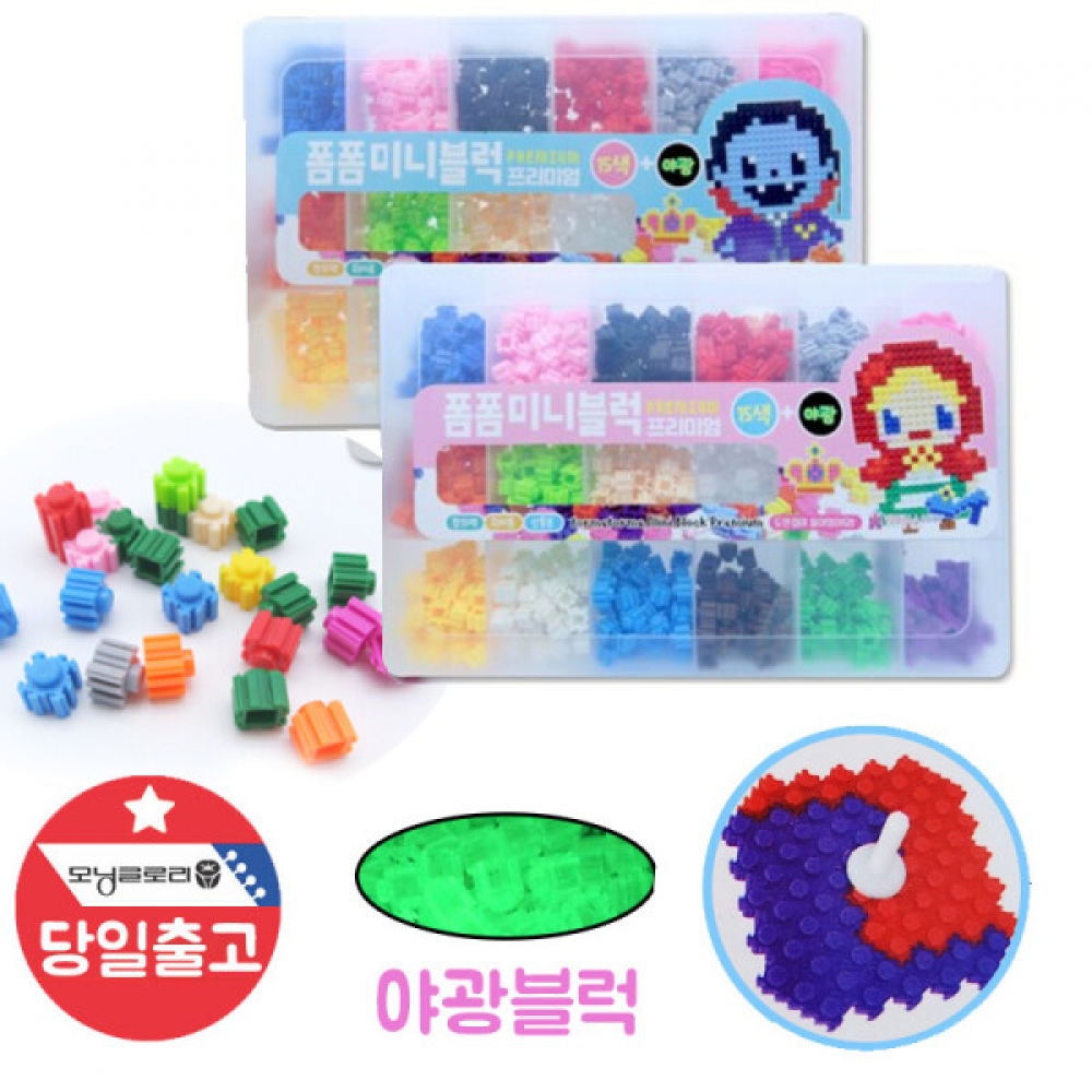 품명 및 모델명 빨간오리 9mm 프리미엄 폼폼 미니블럭 15가지 색상 야광블럭 도안포함