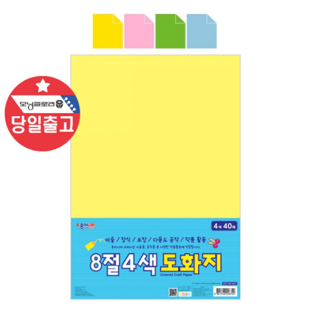 종이나라 8절 4색 도화지 40매 칼라 색상 도화지