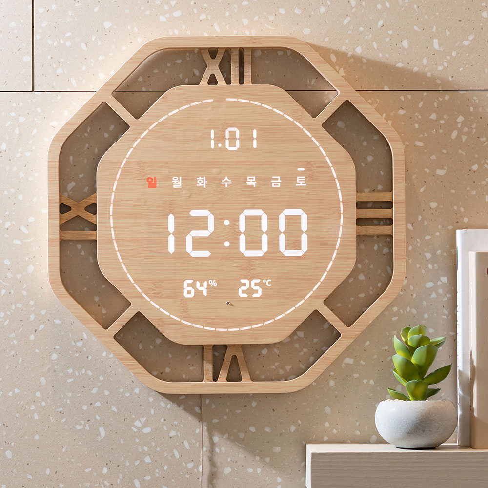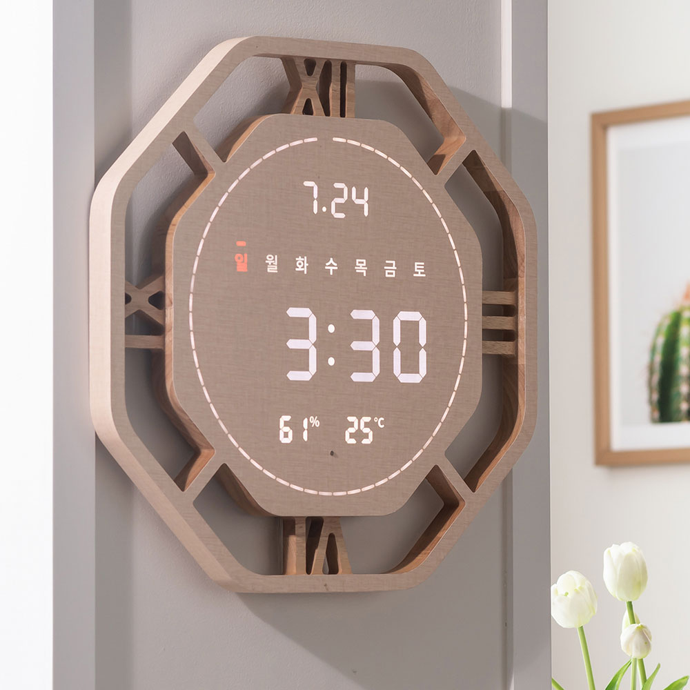 플라이토 3세대 백라이트 루나 온습도 LED 벽시계
