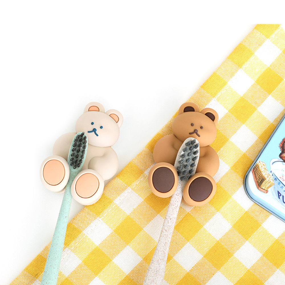 베이지브라운 북극곰 칫솔걸이 실리콘 흡착 꽂이