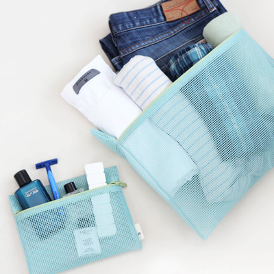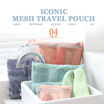 ○ 4가지 사이즈로 구성된 여행용 메쉬 파우치.