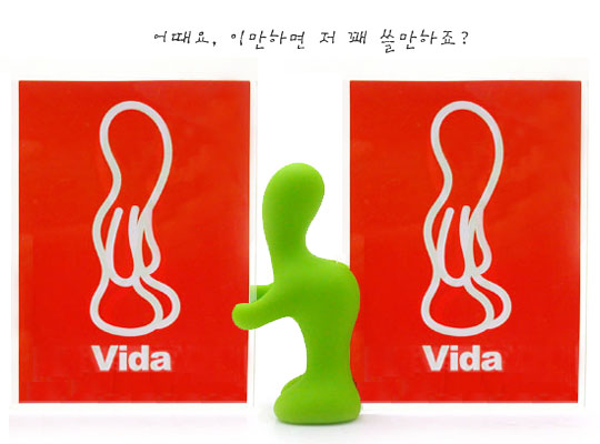 사람모양의 "비다" 피규어가 펜을 꽉 끌어안고, 엉덩이에 힘을 끙 줘서 액자를 지탱하는 모습이 너무 귀엽습니다.