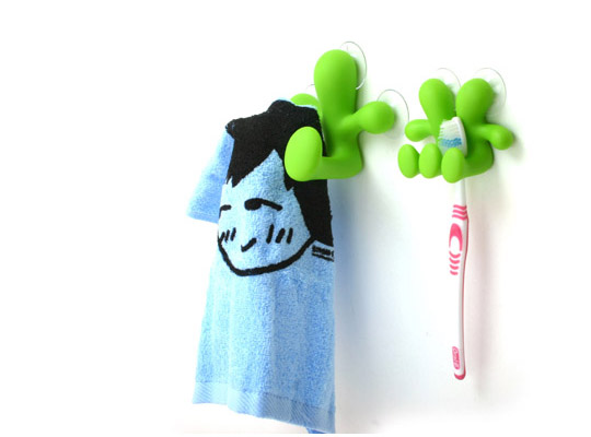 접착고무(suction cup)가 세개나 달려있어 벽이나 거울, 유리,