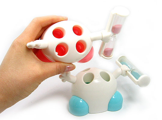 치과의사가 개발하여 특허출원된 제품으로 4개의 칫솔꽂이와 3분 모래시계가