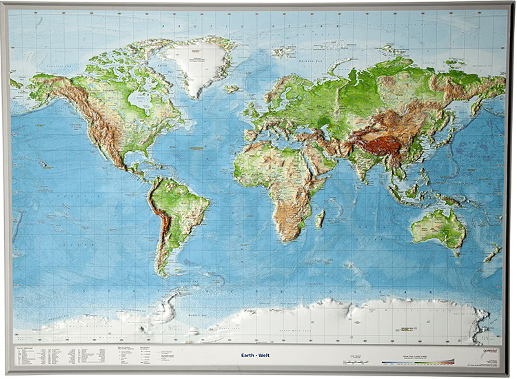 지오릴리프사의 세계지도는 시각적으로 뛰어나고 실제 지형과 매우 가까우며 최대한의 지리 정보를 수록하여 보다 나은 지구에 대한 이해력을 갖출 수 있도록 설계되었습니다.